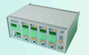- Базовые блоки аппарата «Матрикс» имеют в зависимости от исполнения 2 или 4 канала для подключения излучающих головок с возможностью независимой установки параметров (частоты и мощности излучения) для каждого канала. Наличие независимых каналов позволяет повысить эффективность работы, т. к. для реализации различных методик не требуется менять излучатели, достаточно выбрать нужный канал простым нажатием кнопки.