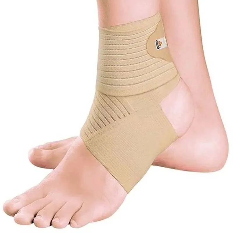- Эластичная лента регулирует степень фиксации, предотвращая подворачивание стопы. Накладывается по принципу «восьмерки».