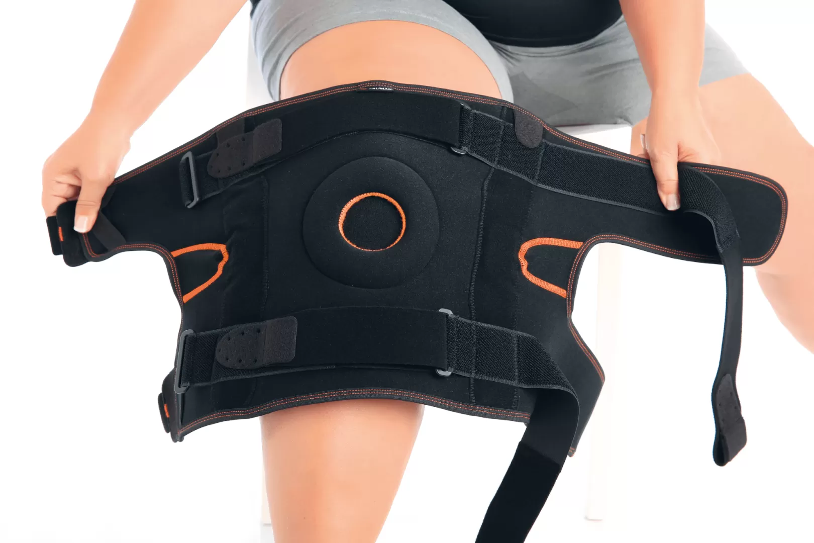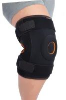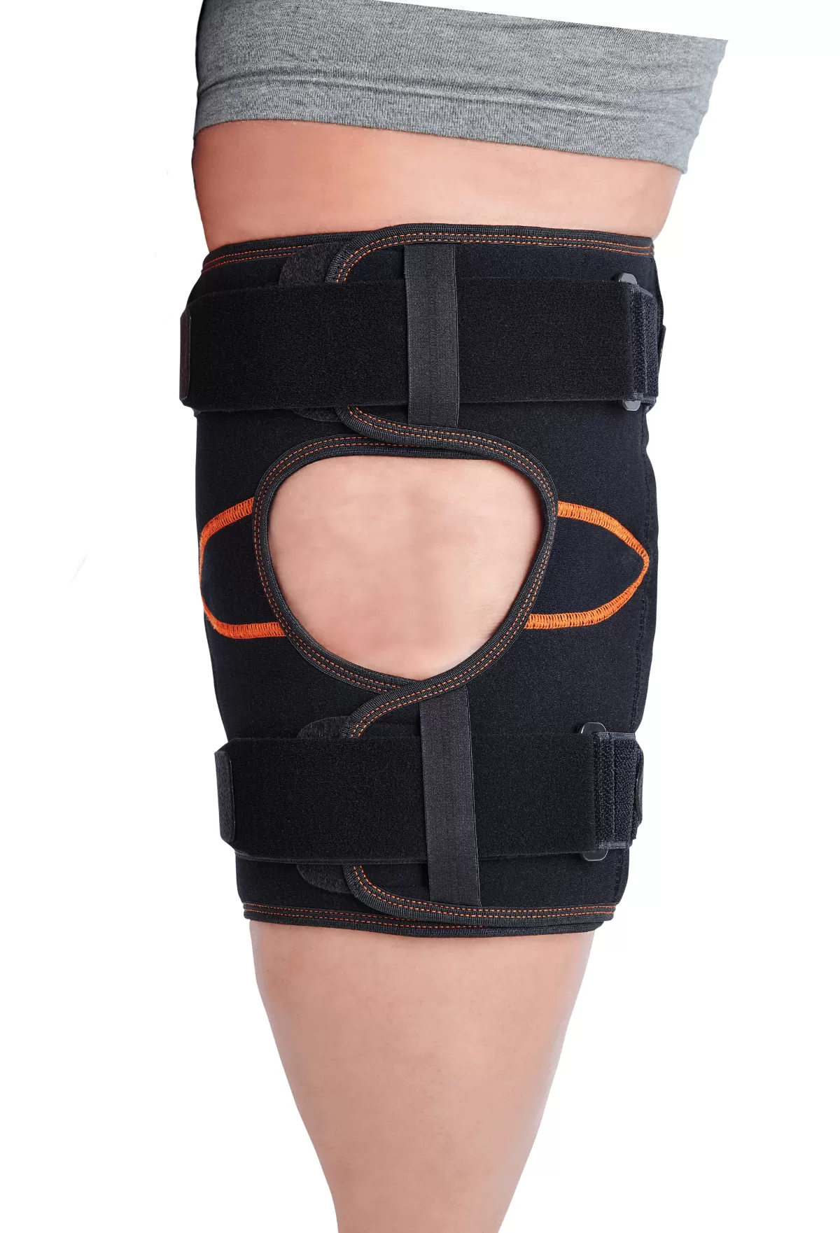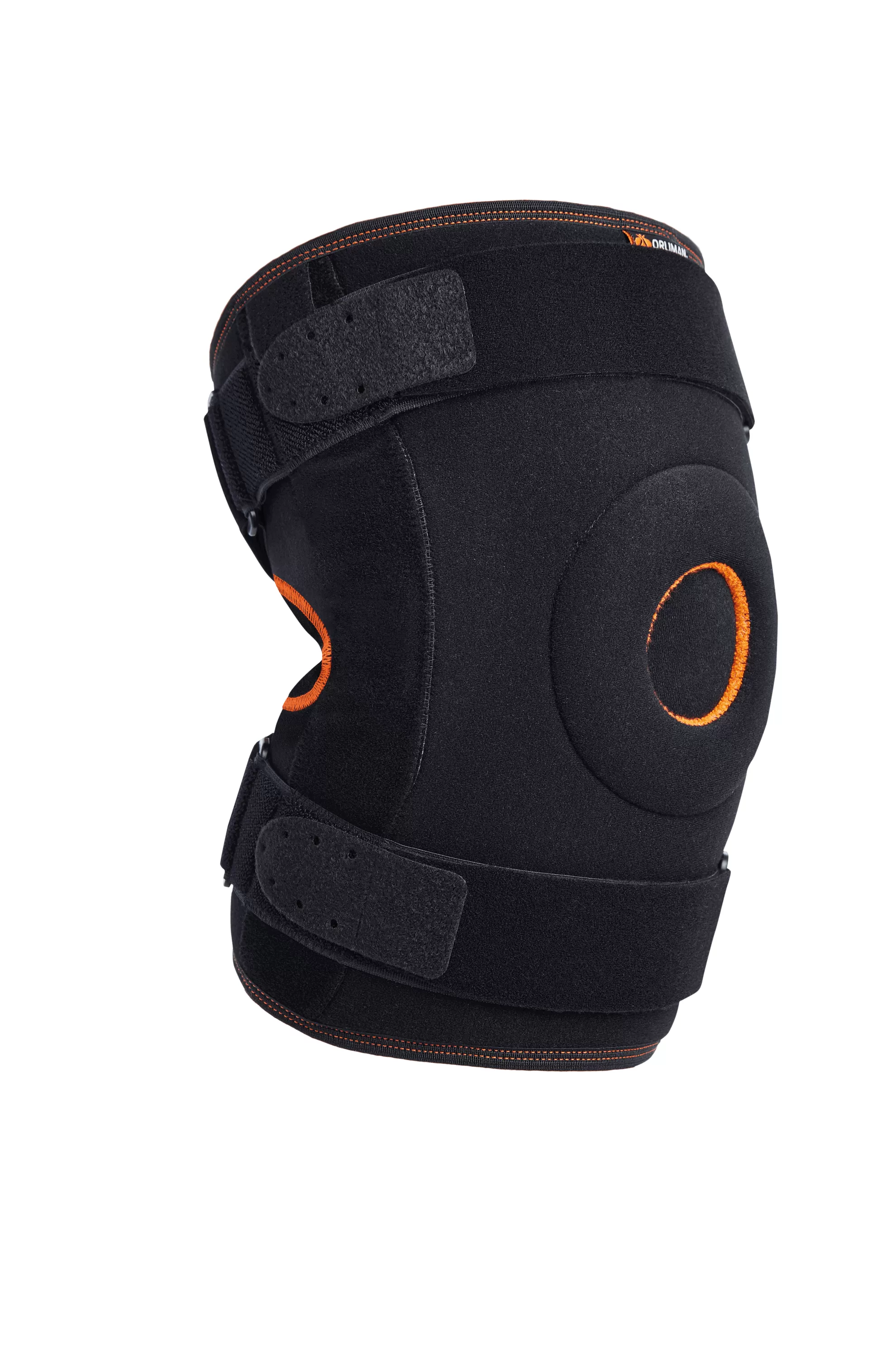 • Эластичная вставка, закрывающая пателлярное отверстие, способствует лучшему прилеганию ортеза в области колена и уменьшению отека.