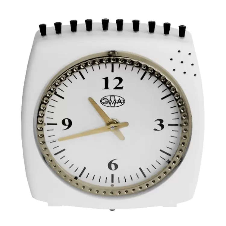 - Для подачи звукового сигнала в корпус вмонтирован зуммер, который включается касанием конца минутной стрелки к специальным контактным штырькам, вставленным в отверстия на кольце циферблата
