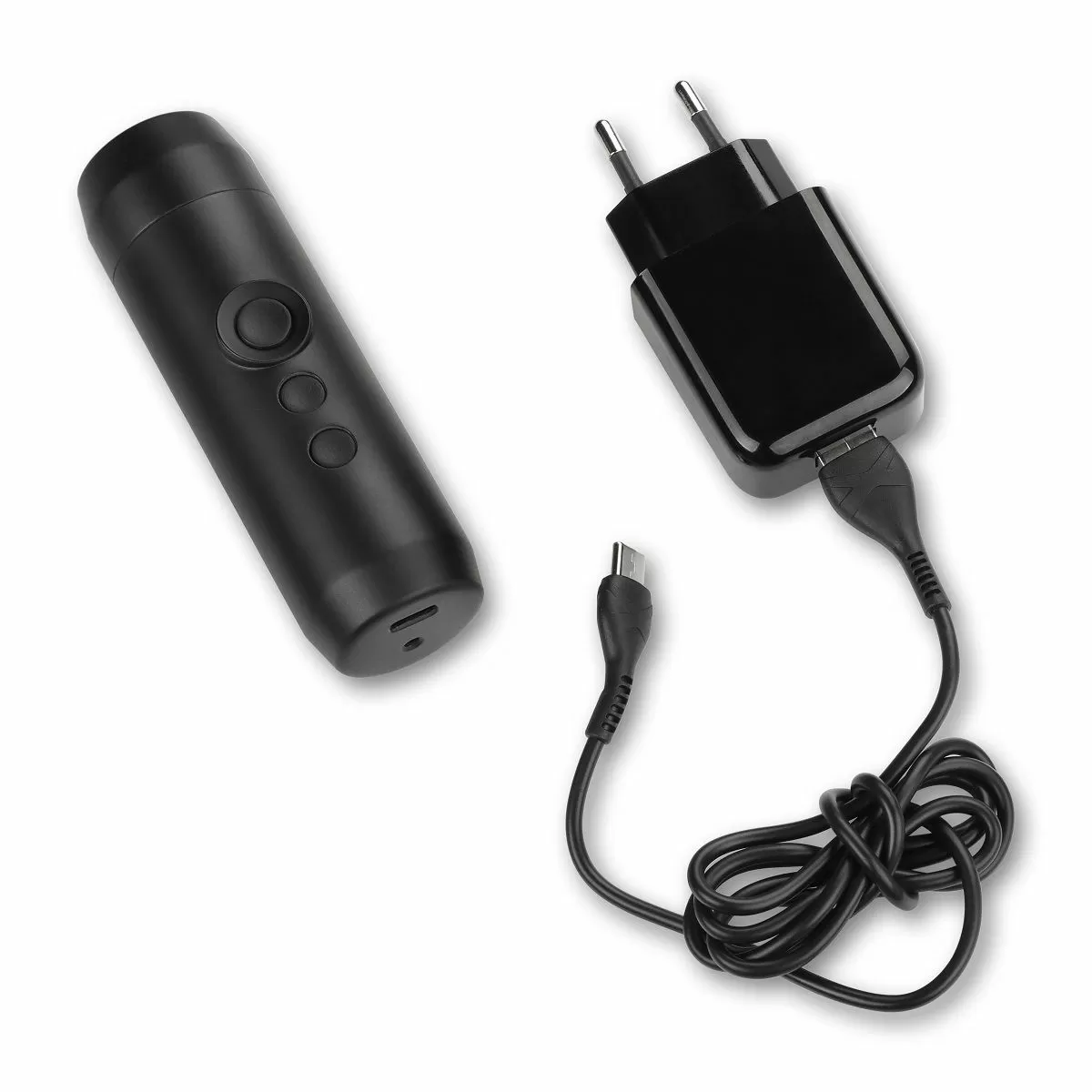 - Для зарядки аккумулятора в комплект входит блок с кабелем съемного типа, имеющим разъем для подключения USB – USB Type-C. Можно подзаряжать батарею от любых мобильных устройств с USB-выходом.