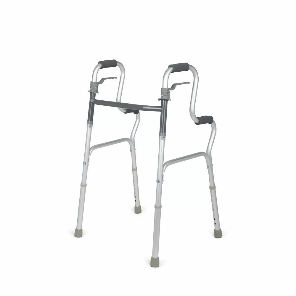 - Высота ходунков регулируется за счет телескопического механизма с кнопочным фиксатором, что позволяет использование ходунков пользователями разного роста.