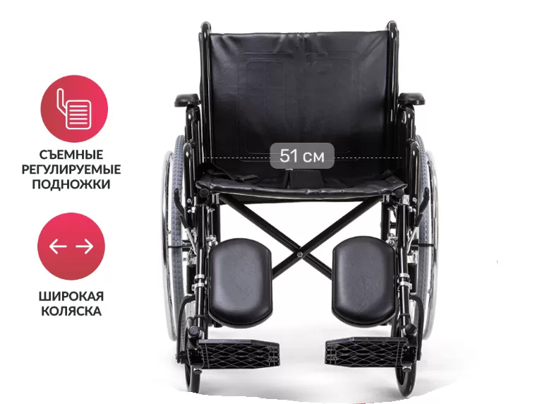 - Подлокотники с мягкими накладками ступенчатые, съемные: пользователь сможет без труда подъезжать к столу и пользоваться предметами мебели, а также садиться в кресло сбоку. Регулируемые по высоте подножки снимаются и откидываются, упрощая вставание и подъезд к мебели.