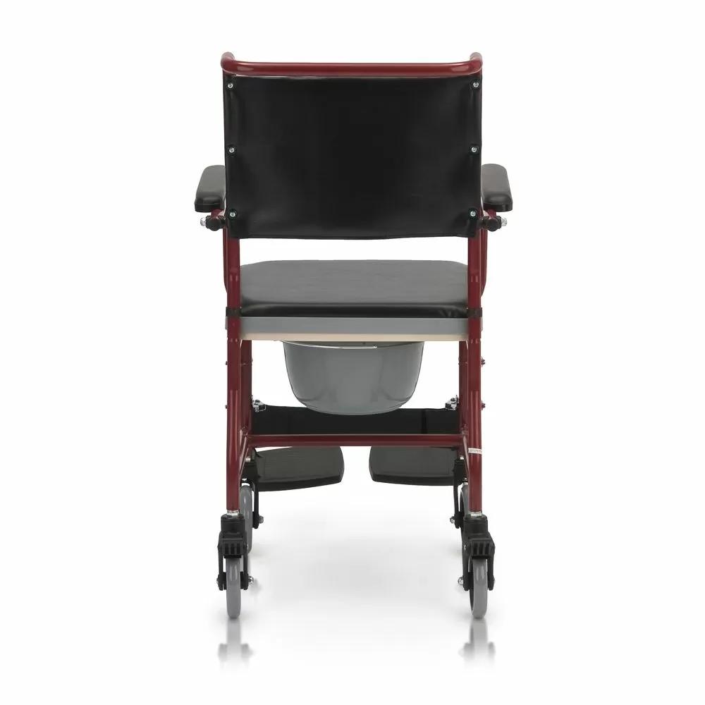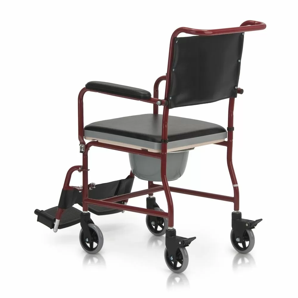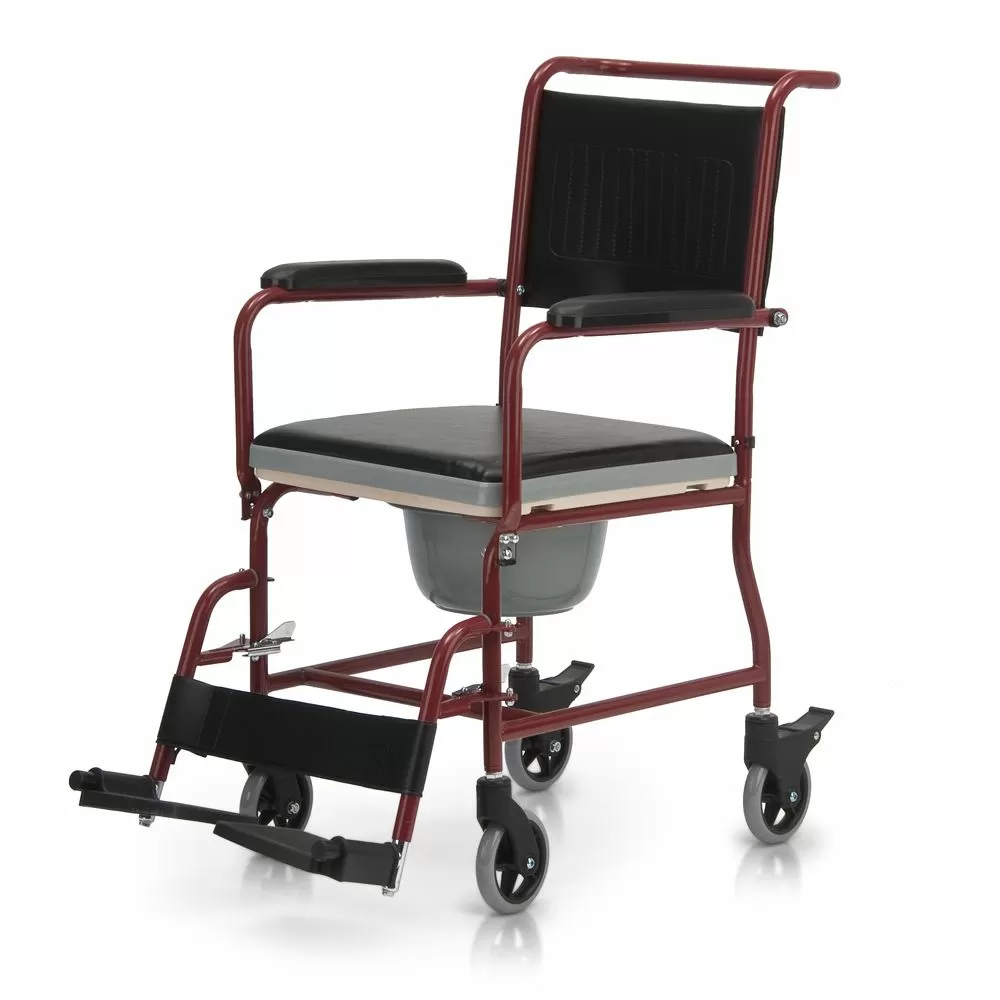 Удобное сиденье и спинка из кожзама, легко устанавливать над унитазом; Откидные подлокотники |