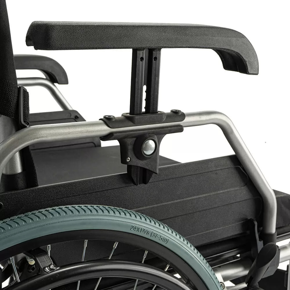 - Адаптивность под пользователя: ширина сиденья регулируется в диапазоне 43-48 см, глубина — 45-56 см, а подлокотники с регулировкой по высоте позволяют идеально подогнать коляску под анатомические особенности и потребности пользователя.