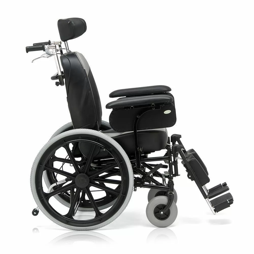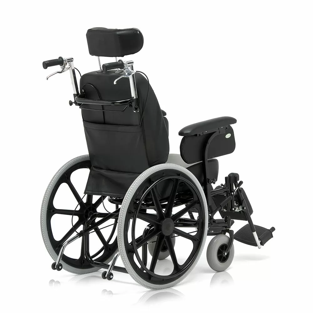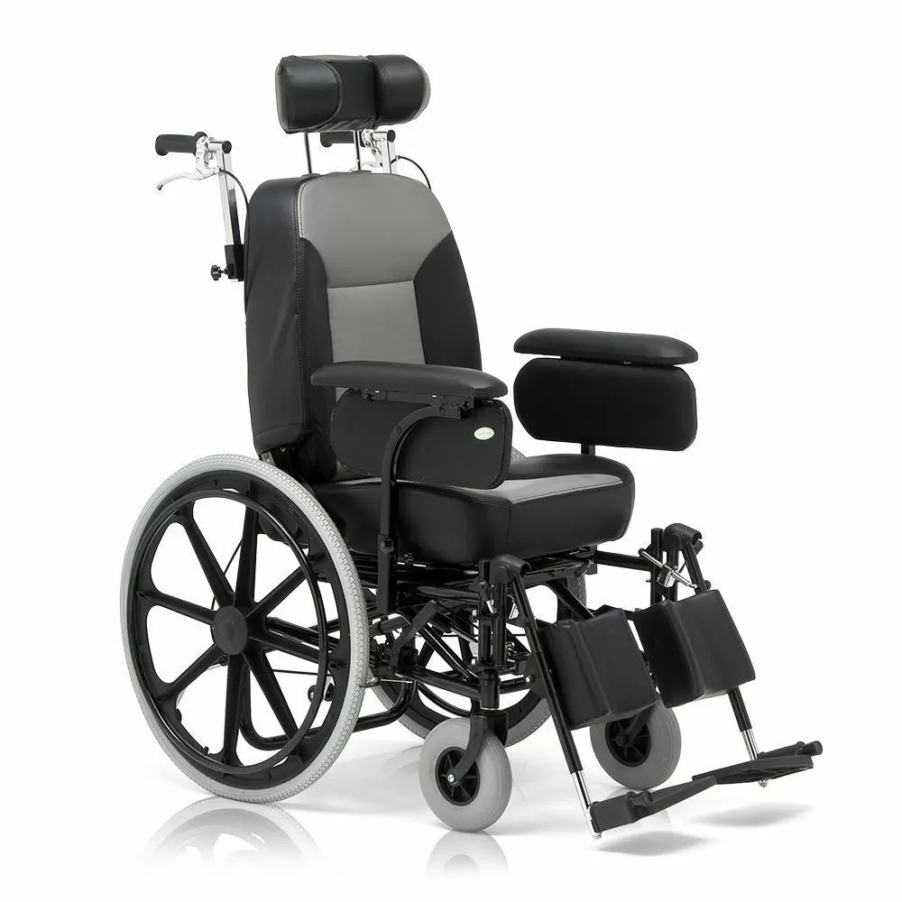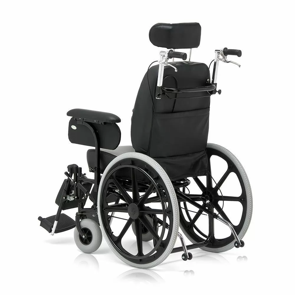 Выдерживает вес до 125 кг. Удобное кресло автомобильного типа. Задние колеса быстросъемные. На рукоятках ручные тормоза для сопровождающего |