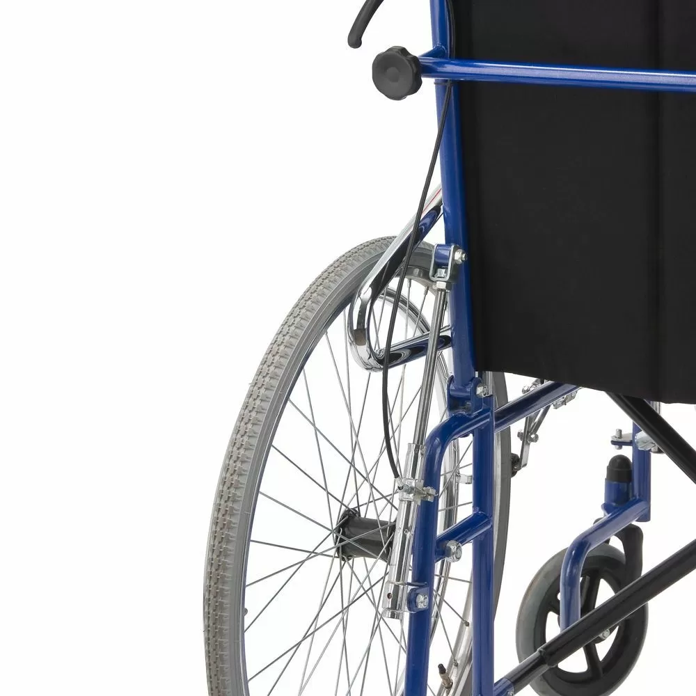 - Колесная база модели представлена передними литыми и задними пневматическими маневренными колесами. Преодолевать уклоны и бордюры без риска завалиться назад помогут антиопрокидыватели с противоскользящими наконечниками. Надежно зафиксировать коляску на время остановки позволяют боковые стояночные тормоза.