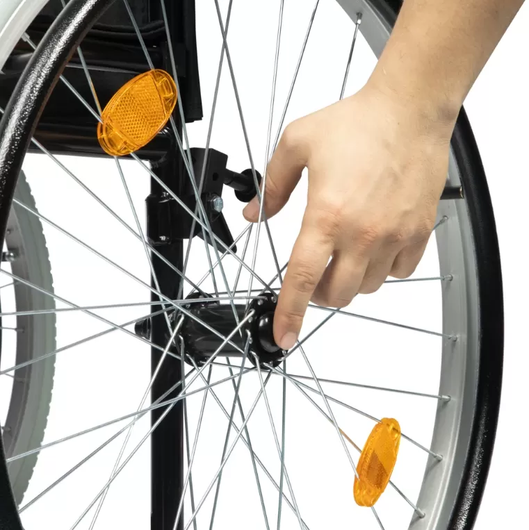 - Быстросъемные задние колеса с кнопочной фиксацией