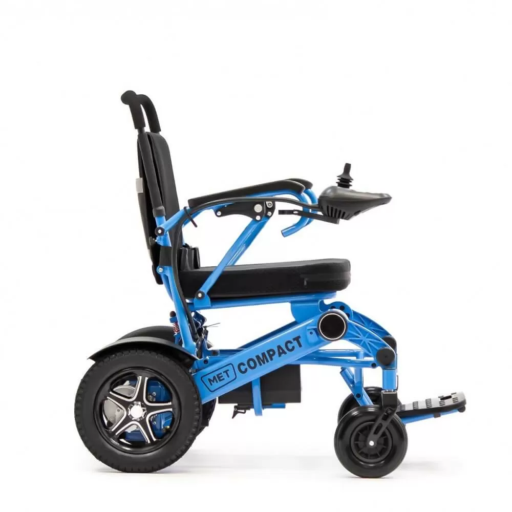 Кресло-коляска оборудовано двумя двигателями мощностью 250 Вт. Наибольшая скорость, которую развивает MET COMPACT 35, составляет 6 километров в час, а дистанция, преодолеваемая коляской на одном заряде, достигает 20 километров. Однако дальность хода на одном заряде может варьироваться в зависимости от скорости движения, веса пользователя, качества дороги и манеры вождения.Характеристики