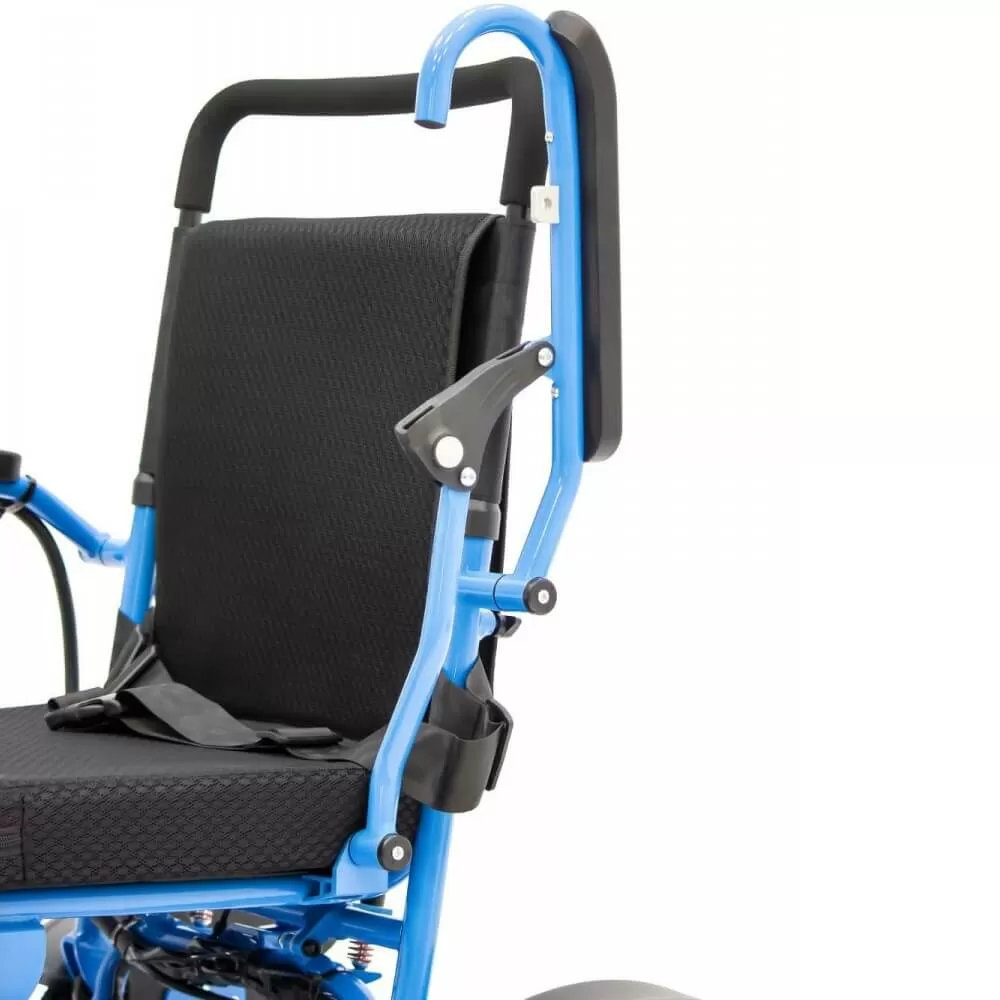 Модель оснащена антиопрокидывателями, которые обеспечивают дополнительную устойчивость коляски.Контроллер находится рядом с подлокотниками, и его можно установить, при необходимости, с любой удобной для пользователя стороны. На нем размещены джойстик, кнопка звукового сигнала, кнопка включения/выключения, кнопки регулировки скорости.