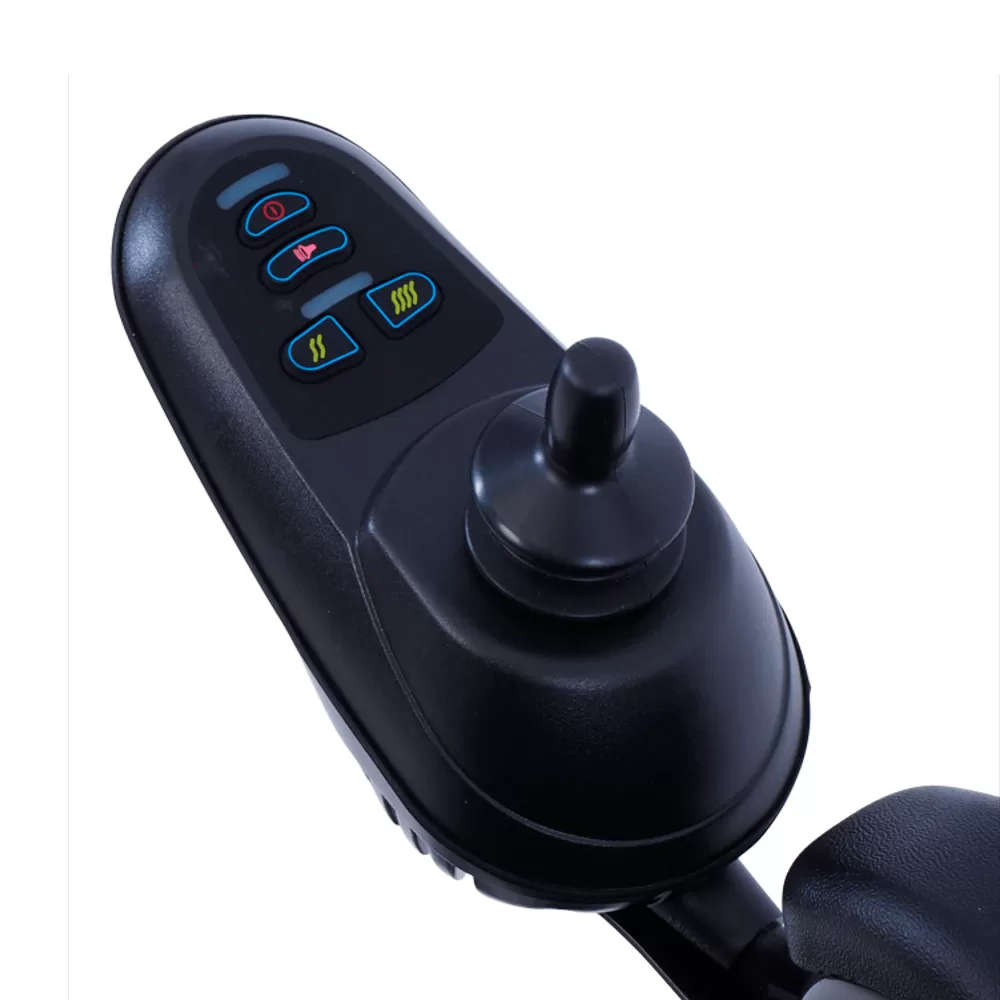 Управление, осуществляемое с помощью электромагнитного джойстика, интуитивно понятно и позволяет точное маневрирование в самых ограниченных пространствах. Откидные подлокотники обеспечивают лёгкое размещение в кресле и высадку из него.