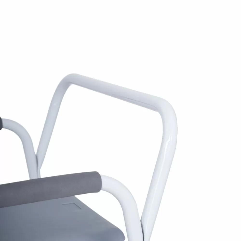 - Сиденье кресла аналогично обычному сиденью для унитаза, поэтому привычно в использовании. Сиденье дополнено крышкой, которая откидывается наверх до определенного уровня. Высота сиденья регулируется от 42,5 до 52,5 см.