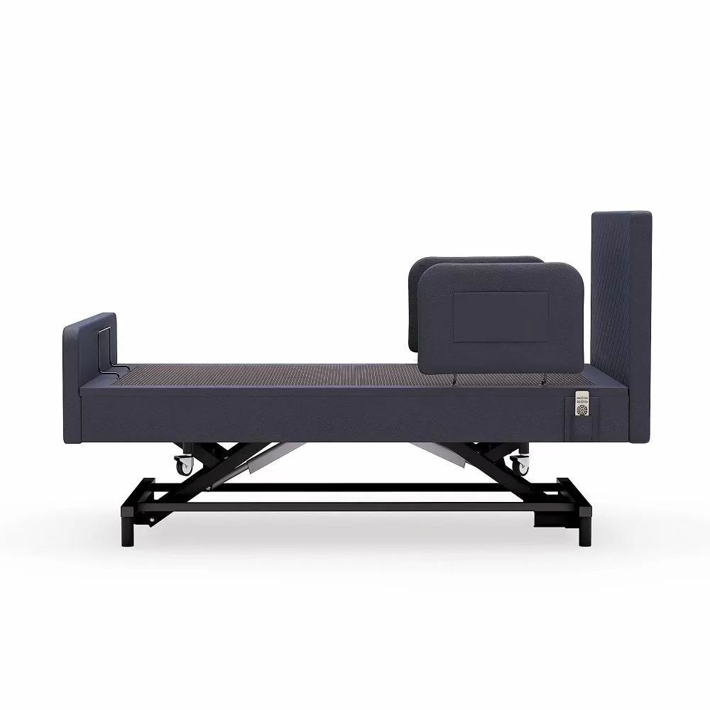 - Регулировка высоты ложа. Высота ложа плавно регулируется электроприводом, позволяя без усилий подобрать идеальное положение. В нижнем положении кровать обеспечивает безопасность при использовании, а в верхнем - значительно облегчает уход за лежачими пациентами, а также замену постельного белья, минимизируя нагрузку на спину.