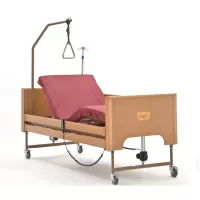 Нейтральный дизайн кровати, которая с лёгкостью впишется в любые мебельные тренды. Натуральные деревянные спинки и алюминиевые боковые ограждения с направляющими, интегрированными в конструкцию спинок, вентилируемое основание ложа, а также пульт управления. Всё это сделано для максимально комфортного выздоровления.