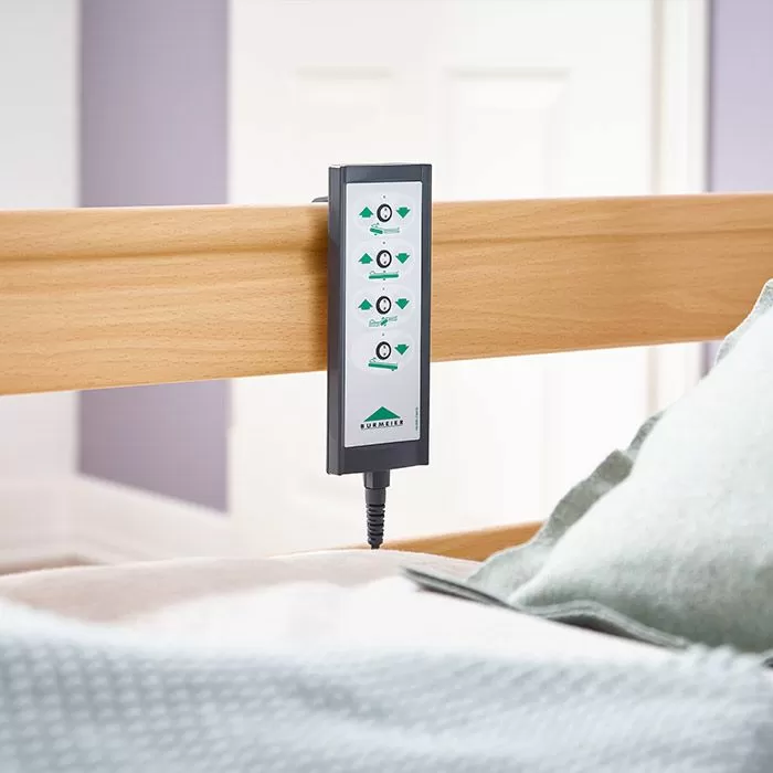 Положение секций изменяется с помощью проводного пульта. Использовать пульт может как пациент, так и ухаживающие за ним люди. Медицинский персонал имеет возможность заблокировать пульт, если на это есть причины, связанные с плохим клиническим состоянием пациента. Управление простое, так как кнопки на пульте имеют объясняющие схематичные изображения. Пульт может размещаться на кровати с помощью гибкого крючка.Прочные материалы