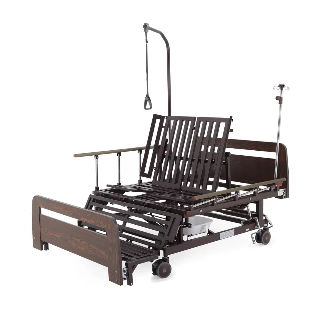 - туалетное устройство — медицинская кровать с туалетом позволяет пациенту избежать лишних движений при справлении естественных надобностей, что очень важно при тяжелых травмах и заболеваниях.