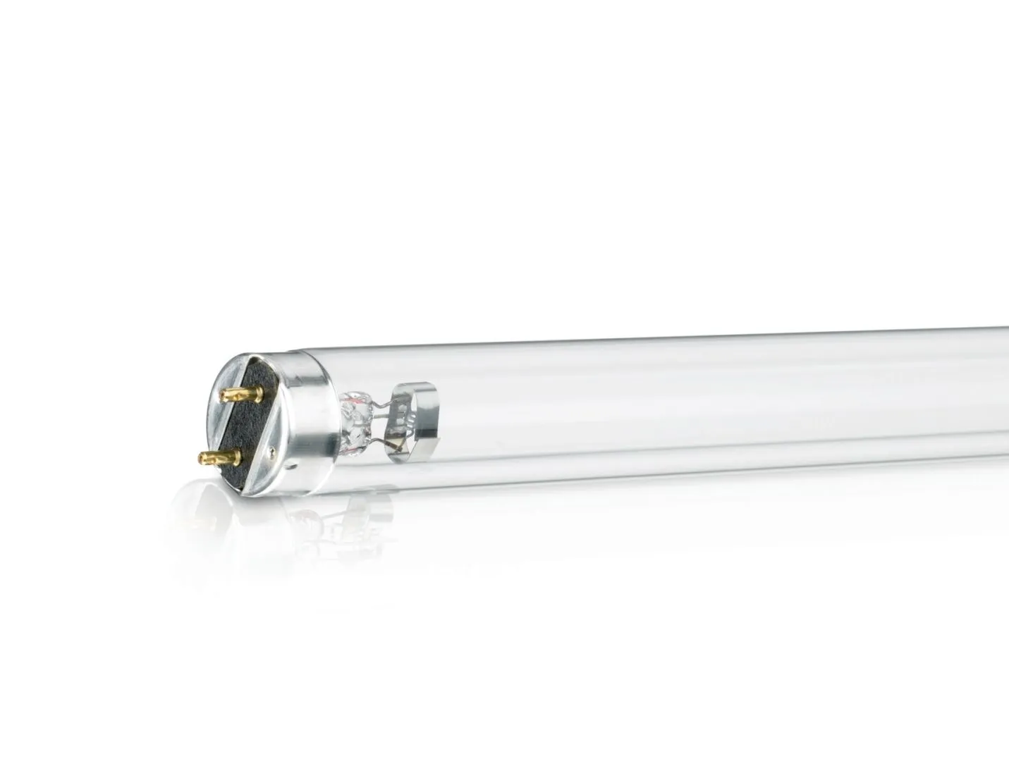 Дезинфекционные лампы TUV представляют собой газоразрядные лампы низкого давления на парах ртути, они состоят из трубчатого стеклянного корпуса и излучают коротковолновые ультрафиолетовые лучи с максимумом на длине волны 253,7 нм, обладающие бактерицидным действием. Стекло отфильтровывает 185-нм линию спектра, ответственную за образование озона.