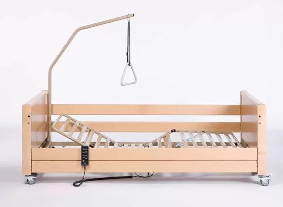 Медицинские кровати Luna X – Iow имеют четыре колеса с тормозам на каждом. Фиксированные торцевые ограждения из бука отполированы, не содержат металлических вставок. Телескопическая направляющая система с шаровой опорой поднятия и опускания находится в головной и ножной части кровати, не выступает за габариты, спрятана в спинках.