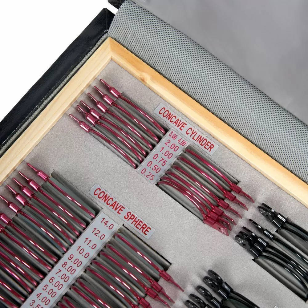 - Набор включает специальные сферические линзы для обследования зрения. В комплект входят: парные отрицательные (-) (вогнутые) от 0.25 дптр до 14.00 дптр и парные положительные (+) (выпуклые) линзы от 0.25 дптр до 6.00 дптр. Выпуклые линзы используются для исследования гиперметропии (слабой клинической рефракции), вогнутые - для исследования миопии (сильной клинической рефракции) и старческой дальнозоркости.