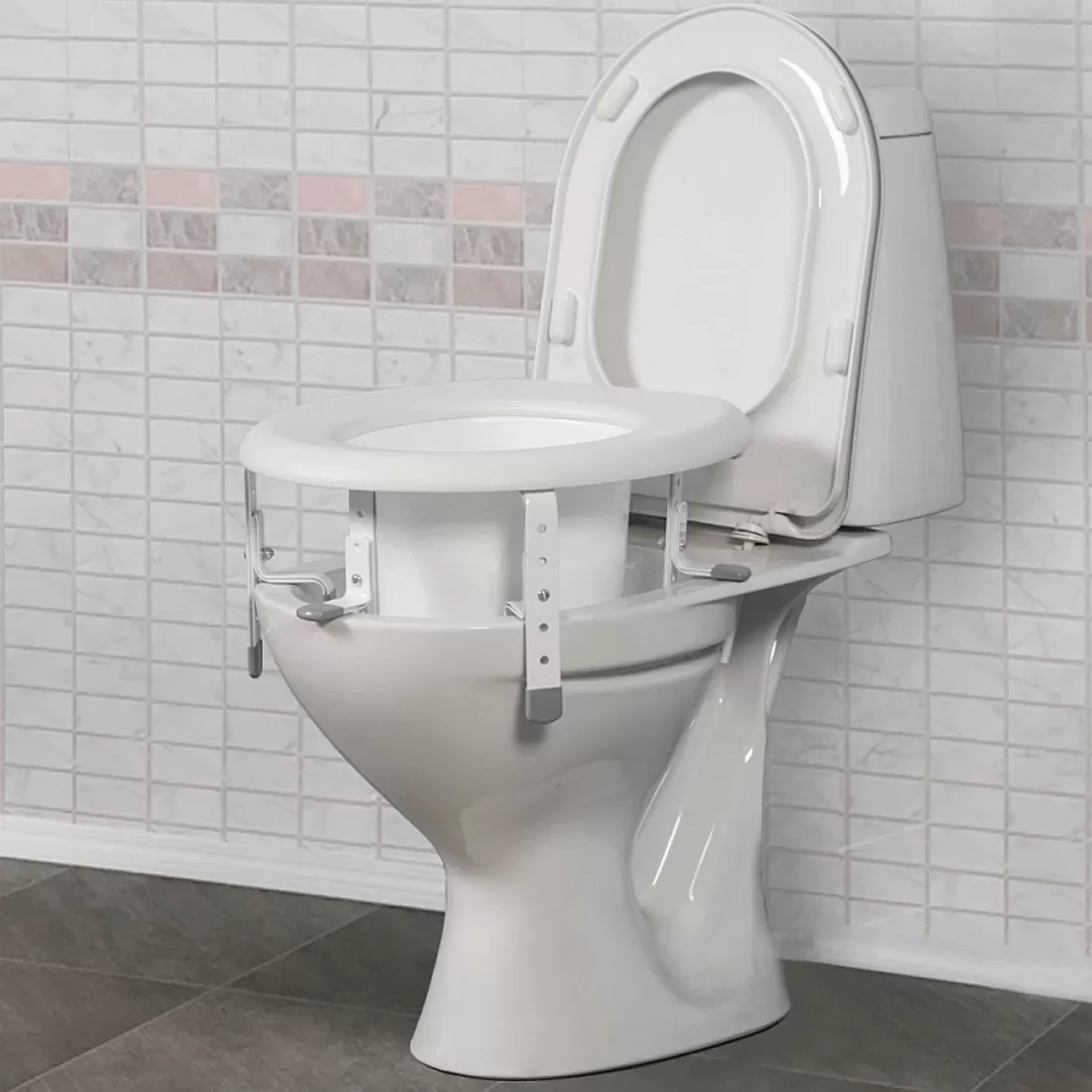 - Пластиковая насадка на унитаз с регулировкой по высоте увеличивает высоту унитаза