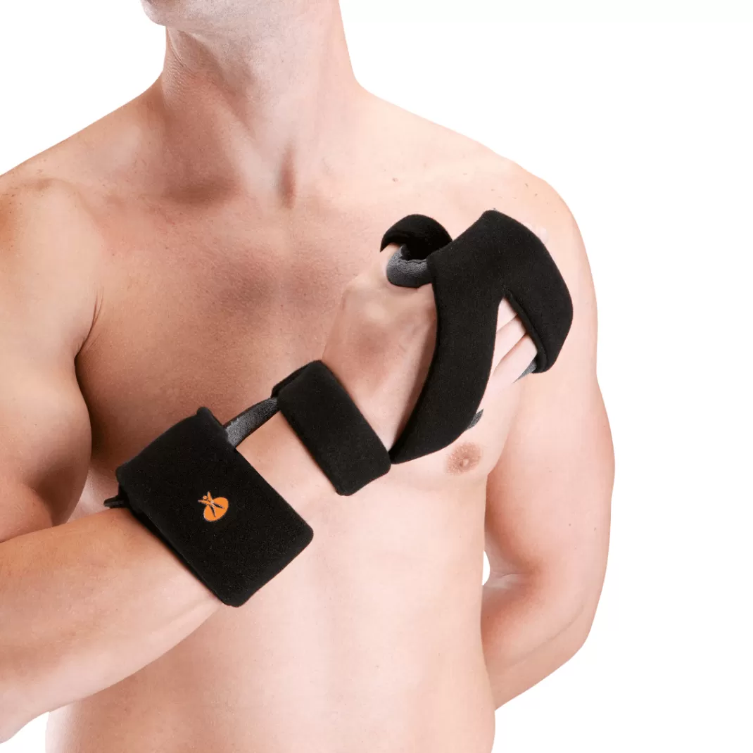- Ортез изготовлен с использованием алюминиевого каркаса, что позволяет изменять угол ограничения подвижности лучезапястного сустава, кисти и пальцев.