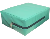 Чехол для подушки изготовлен из клеенки медицинской с ПВХ покрытием с пенополиуретановой вставкой, на молнии. Материал чехла для подушки представляет собой полиэфирную тканевую основу, покрытую эластичным слоем поливинилхлорида. Микроструктура ПВХ-слоя и его поверхности влагостойкая, не пропускает биологические жидкости.