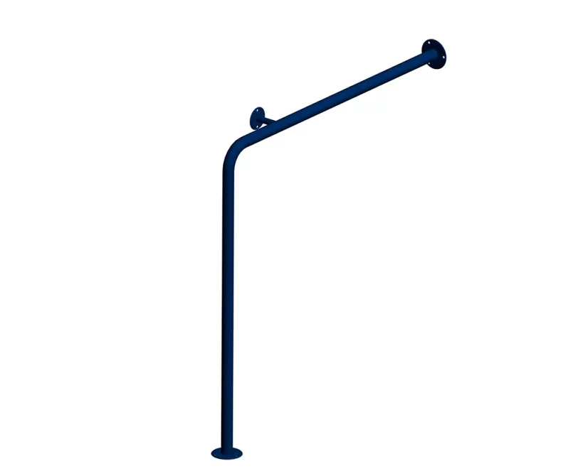 Поручень для инвалидов угловой с опорой на пол ПУ-02.04 предназначен для крепления на ровных поверхностях стен. Служит опорой для людей с ограниченными физическими возможностями.