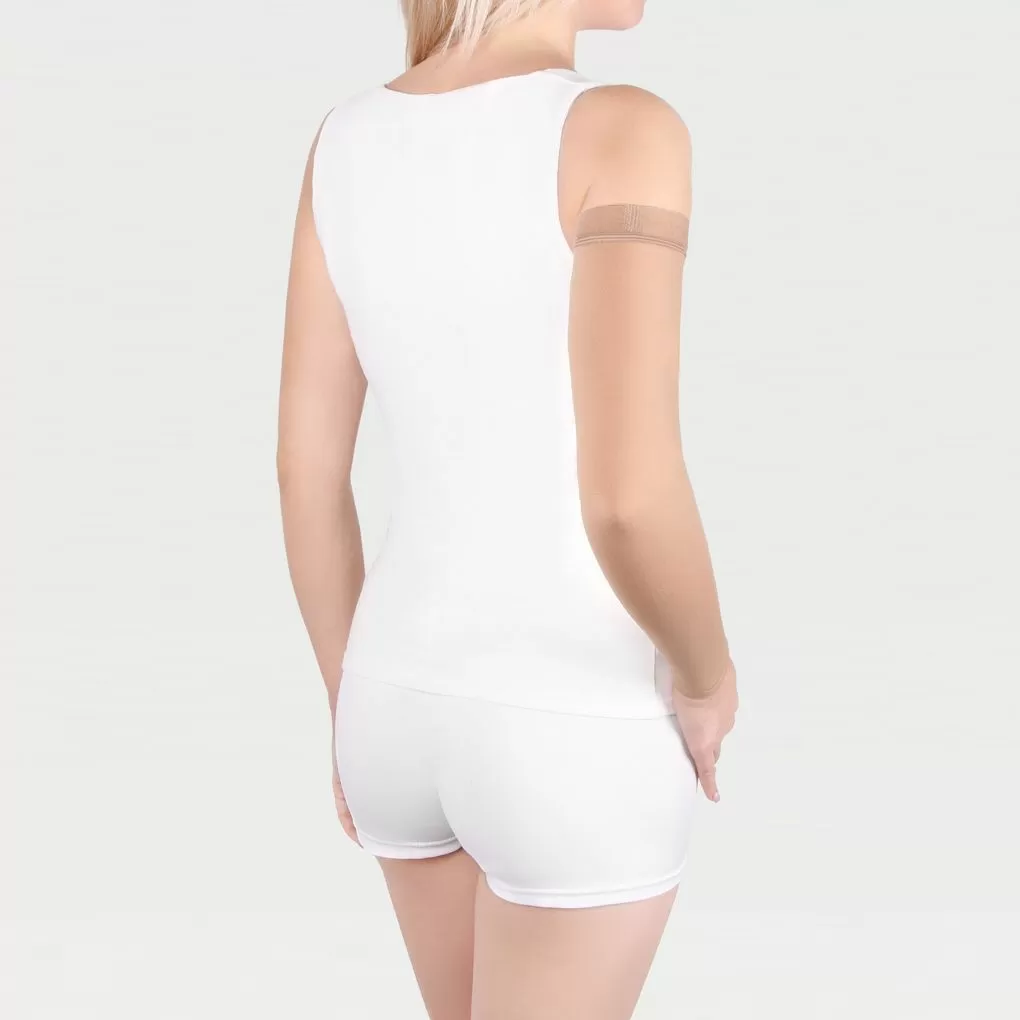- Опустите батлер и аккуратно расправьте изделие по руке. Резинка должна располагаться на 5-7 см ниже подмышечной впадины.