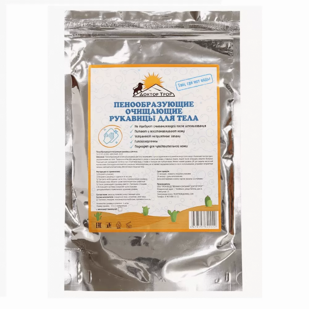 Пенообразующие очищающие рукавицы для тела незаменимы при затрудненном и ограниченном доступе к воде. Исключают контакт рук с загрязнениями на теле. Предназначены для ежедневного ухода и очищения кожи у пожилых людей, людей после операции, лежачих больных. Подходят для проведения гигиены при отсутствии воды, а также в походах или путешествиях. Имеют низкий уровень pH для защиты кислотной мантии кожи. Благодаря наполнителю рукавицы гипоаллергенны, не оставляют ощущения липкости после использования, устраняют неприятные запахи, смягчают и питают кожу, обеспечивая очищение тела.
