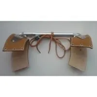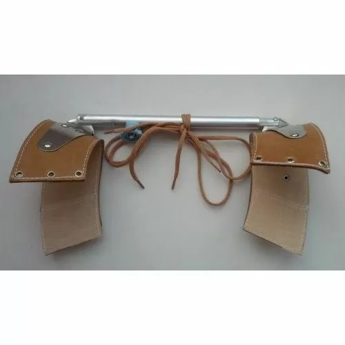 - Она представляет собой изготовленную из алюминиевого сплава и нержавеющей стали телескопическую распорку с раздвижным винтом и манжетами из натуральной кожи.