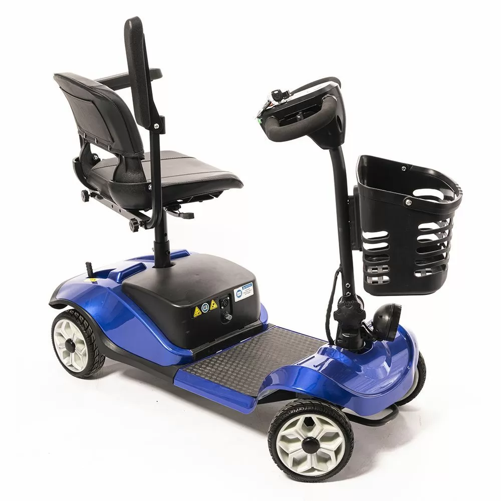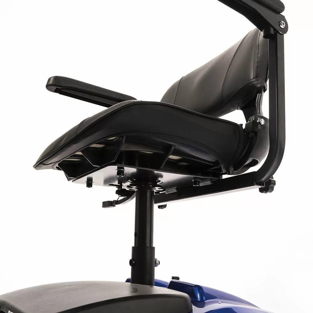 Оснащен удобным рулем, на котором располагается панель управления, и поворотным сиденьем с откидывающимися подлокотниками. Это позволяет сделать посадку на кресло скутера комфортной даже для пользователей, которые имеют проблемы с опорно-двигательным аппаратом.