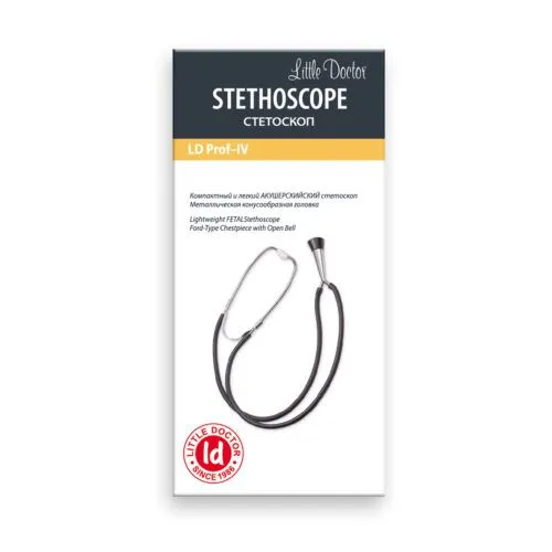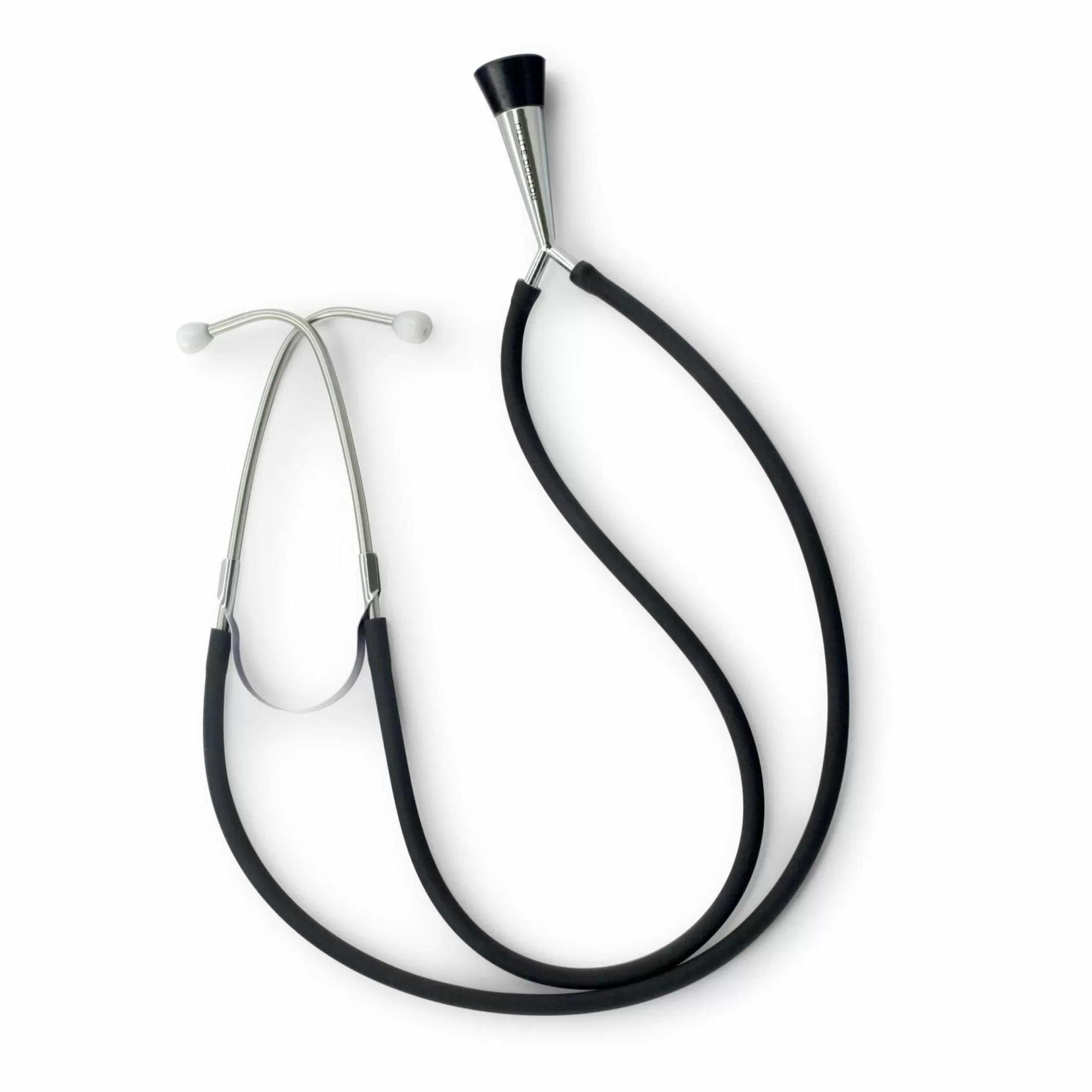 металлическая головка конусообразной формы с пластиковым колоколом, 2 звукопроводящие трубки длиной 56 см, бинауральные (ушные) хромированные металлические трубки c наружной пружиной, виниловые наконечники для ушей |