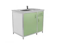 - Мойка врезная с правым крылом — нержавеющая сталь, комплектуется смесителем, сифоном и гофрированным сливом