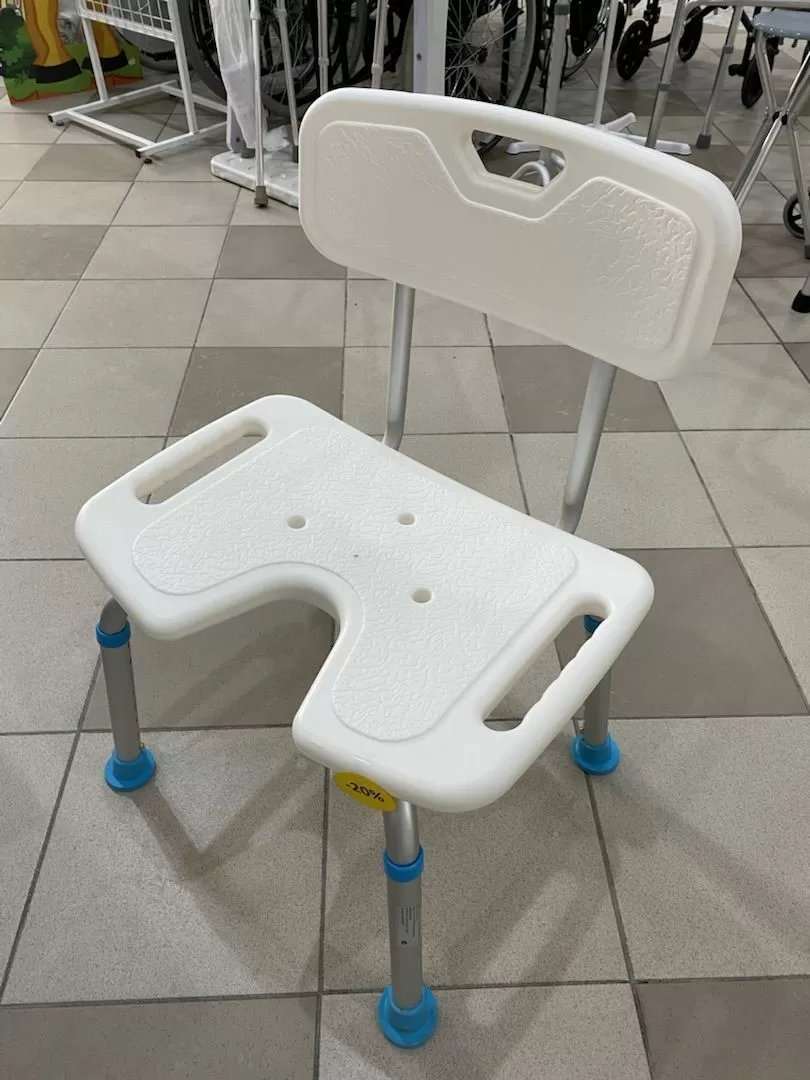 Прочный стул для ванны (вид 110360) Ortonica Lux 605 со спинкой и гигиеническим вырезом изготовлен из гигиенического прочного пластика. Предназначен для облегчения и безопасного процесса принятия водных процедур для людей с ограниченными двигательными возможностями и людей престарелого возраста.