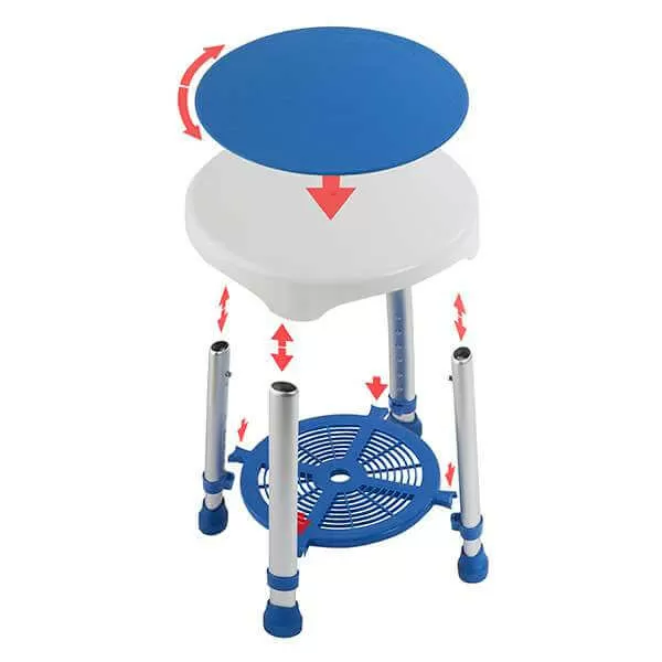 Санитарный стул для ванны с вращающимся сиденьем 10502 служит для облегчения принятия водных процедур. Универсальное изделие можно использовать в душе, ваннах подходящего размера или ставить рядом с ванной.