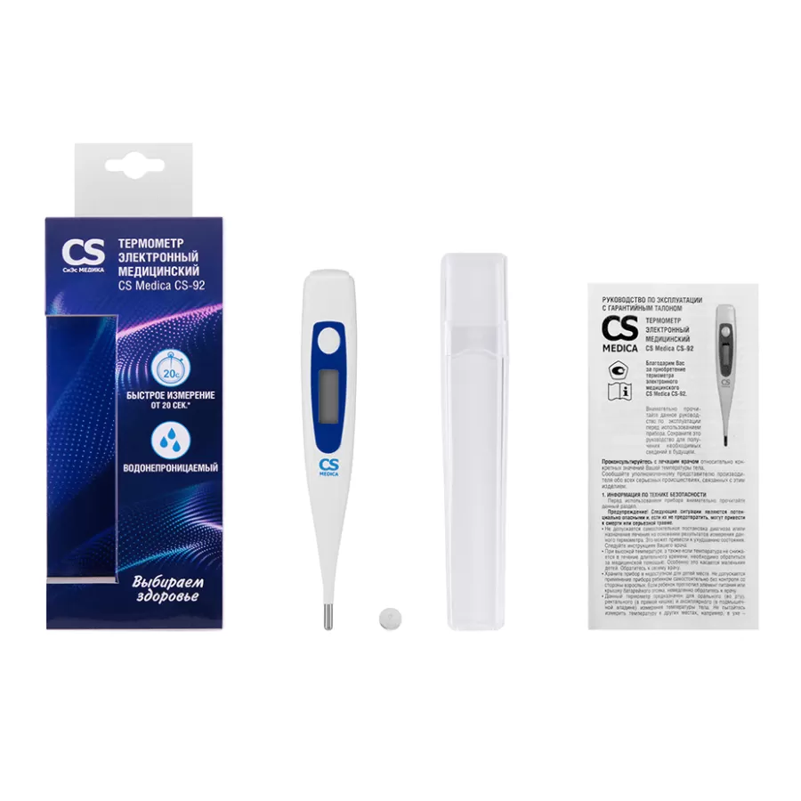 Электронный термометр CS Medica CS-92 - высокоточный прибор для измерения тела ректальным, аксиллярным и оральным способами взрослым и детям. Термометр относится к категории оборудования домашнего назначения."Тревожная сигнализация" - при температуре свыше 37,8 0C прибор издает звук, который оповещает о повышенной температуре малыша.