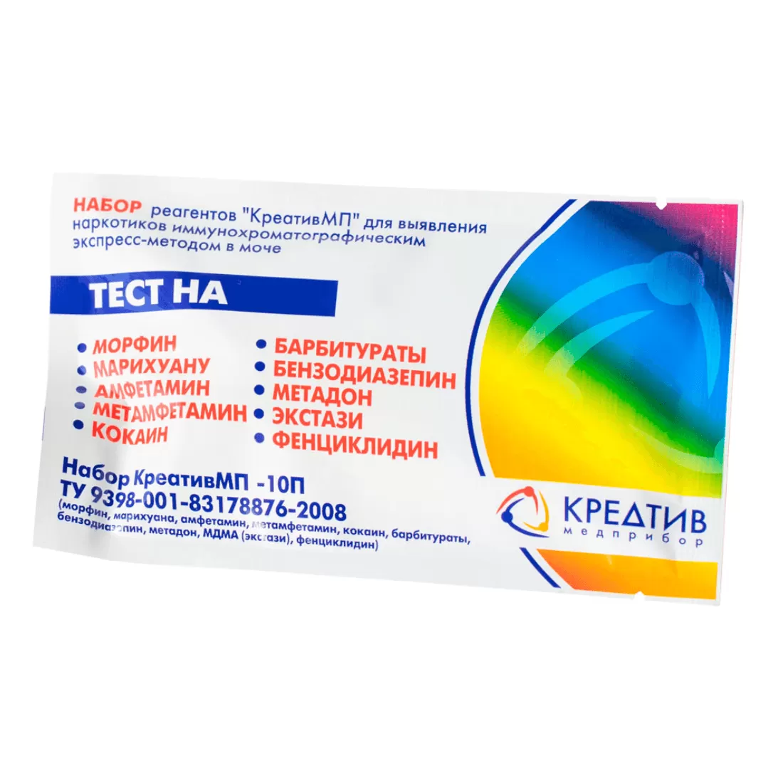 Тесты по моче КреативМП-10 для определения 10 видом наркотиков, 16 шт. Цена за упаковку из 16 штук.Мультипанель погружного типа, применяются для выявления факта употребления нескольких видов наркотиков.