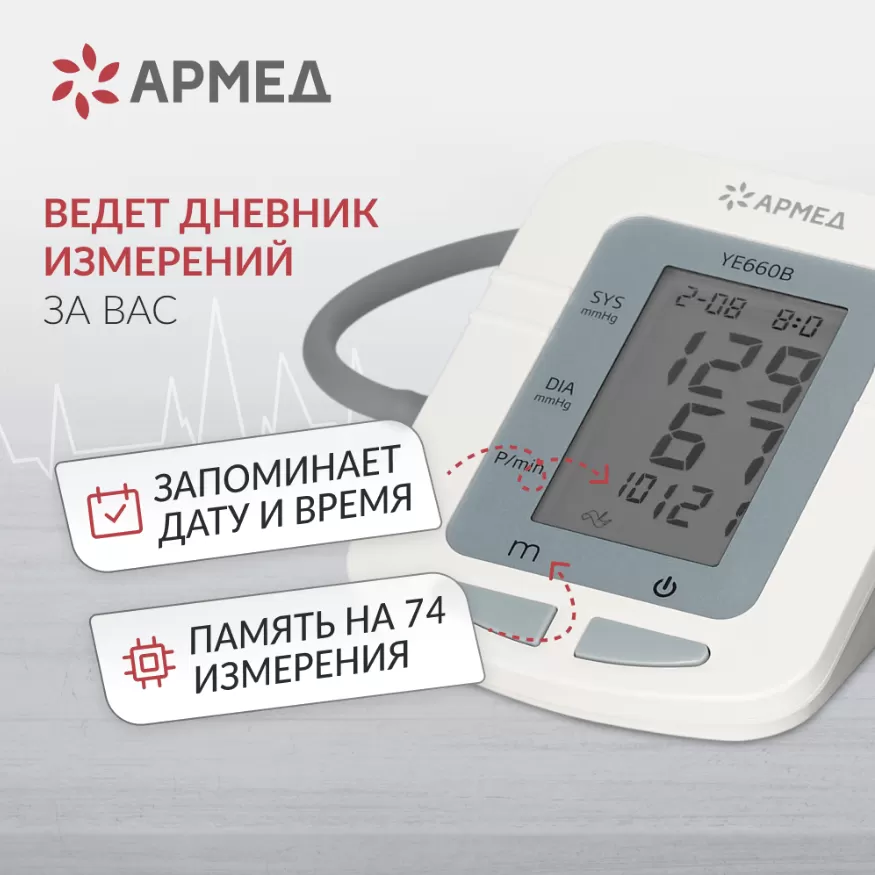 Классическая манжета 22-45 см; Память на 74 измерения |