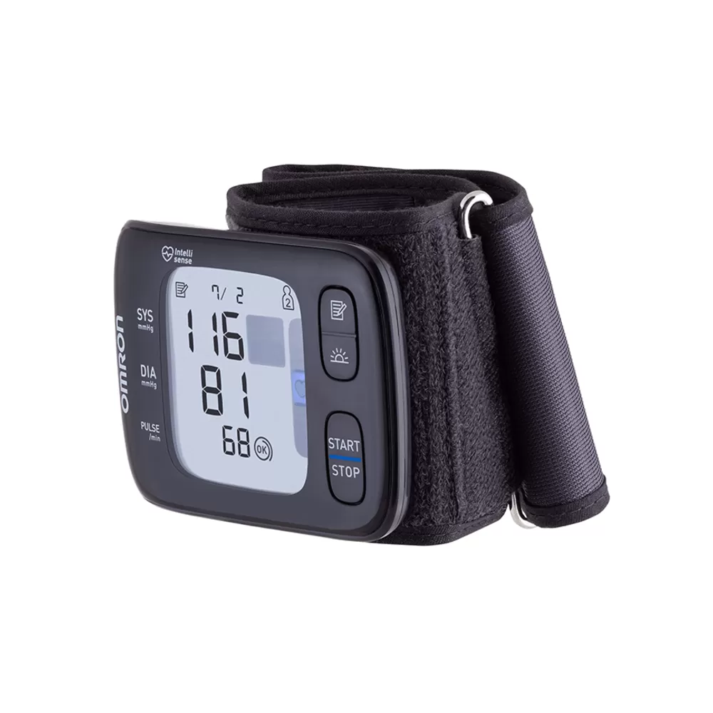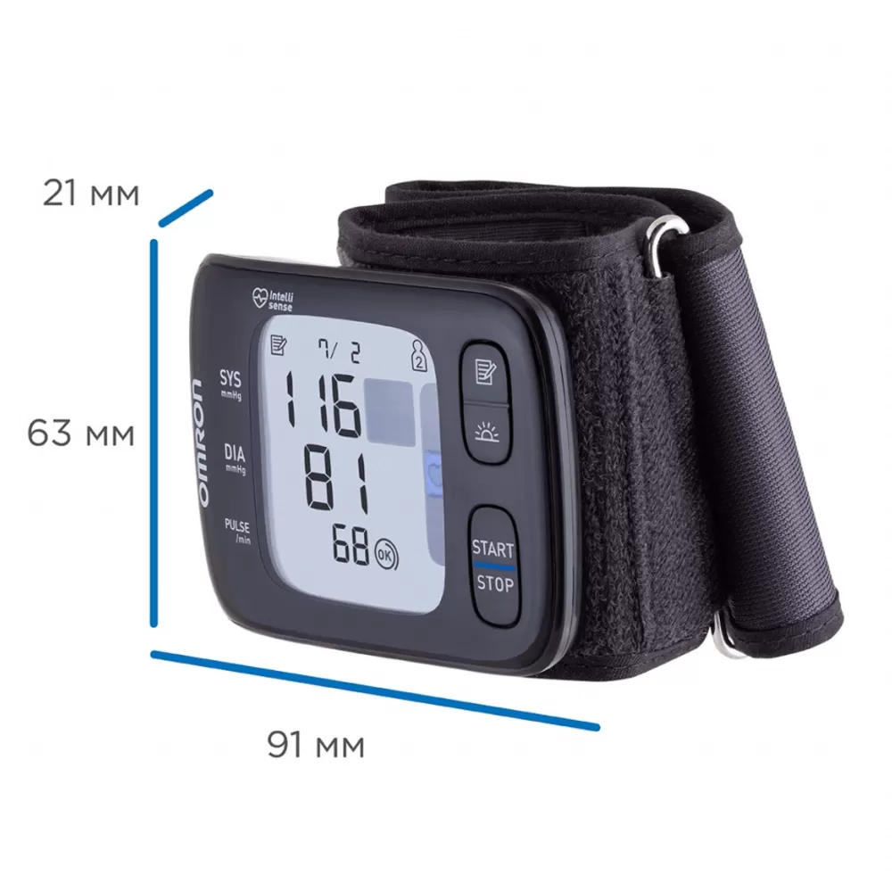 Автоматический тонометр на запястье OMRON RS7 Intelli IT рассчитывает среднее значение на основании трех измерений, произведенных за 10 минут. Если артериальное давление или среднее еженедельное утреннее значение превышают норму, на экране появляются соответствующие значки.Дополнительные функции прибора – распознавание движения во время измерения и нарушения сердечного ритма, позволяют получить более полную картину состояния здоровья.