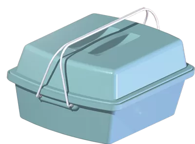 Укладка представляет собой корпус с парой симметрично расположенных ручек и крышкой. Для фиксации крышки на корпусе предусмотрены замки. При необходимости на замки можно установить пломбу.