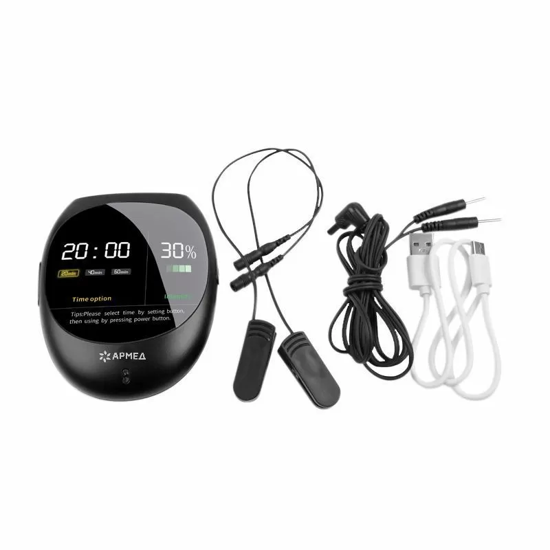 - Использование прибора не вызовет сложностей благодаря понятному кнопочную управлению. С их помощью регулируется время и сила воздействия импульсов, настраивается время, а на экране отображается каждое изменение в настройках.