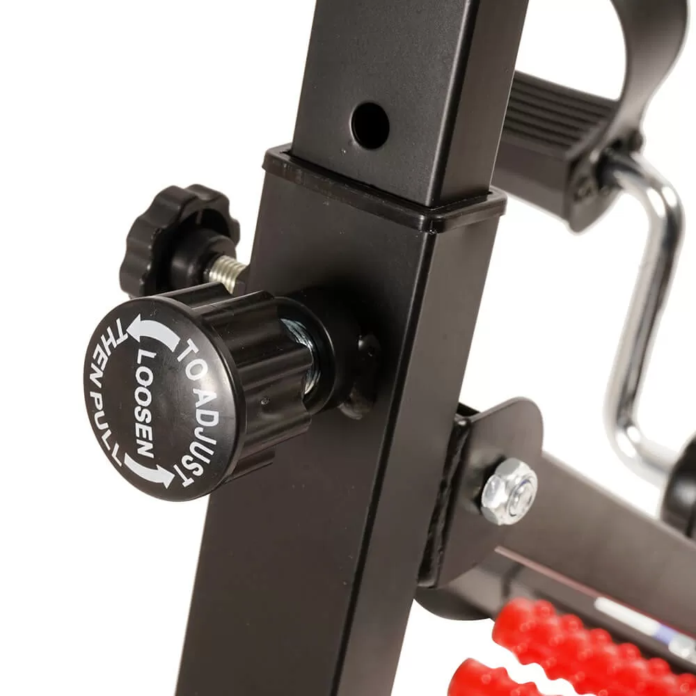 Устройство-трекер позволит отслеживать прогресс пользователя и регулировать нагрузку в течение тренировки. Рукояти и нижняя площадка оборудованы массажной поверхностью, стимулирующей кровообращение пользователя.
